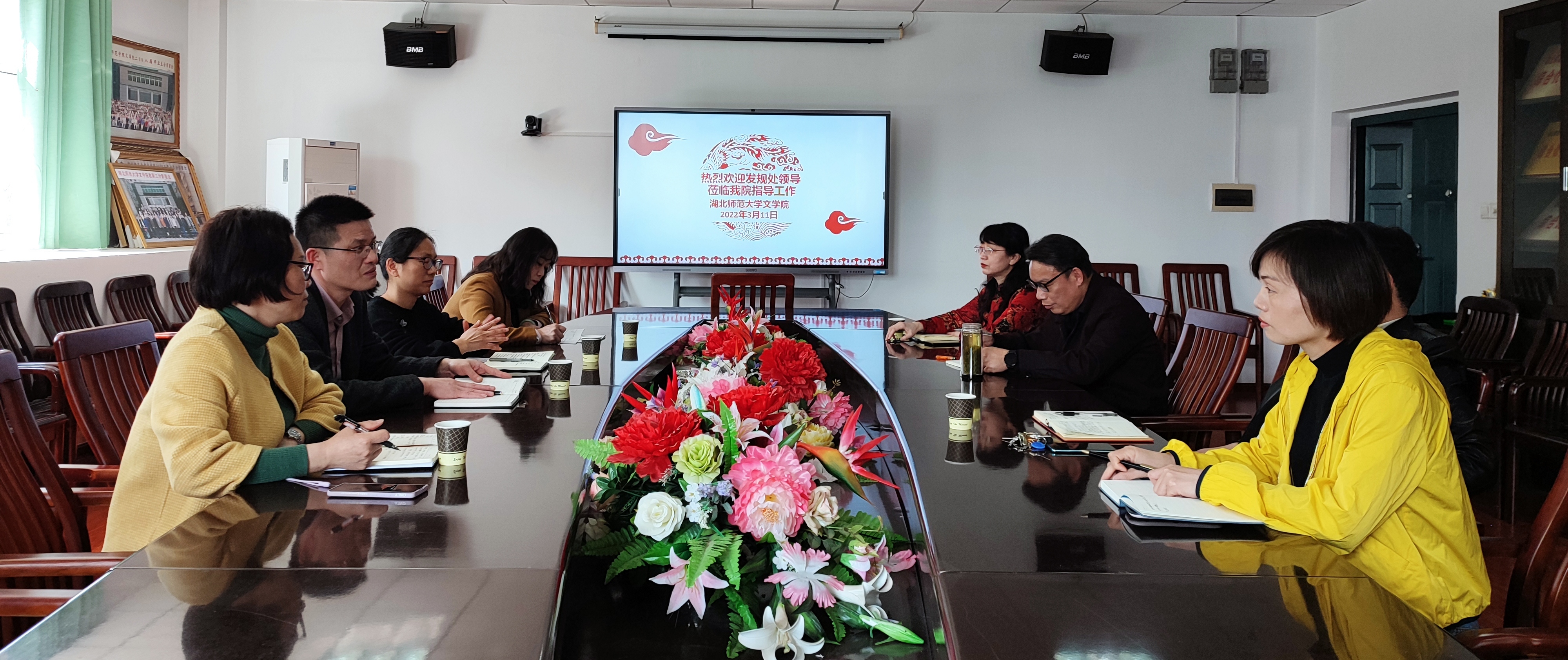 2022年3月11日上午,学校发展规划处(招投标管理中心)处长(主任)熊荣伍率副处长(副主任)陈引兰、副处长应娜、科长卢聪来文学院进行工作调研,文学院党委书记严志谷、院长李治平、党委副书记陈敬道和副院长彭江浩参与调研座谈。