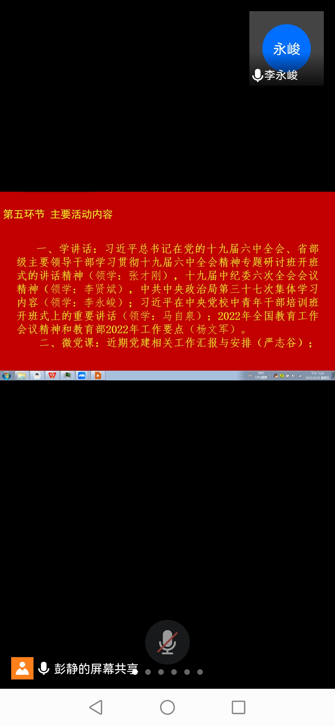 2022318日晚,文学院教师一支部与教师二支部联合开展三月线上主题党日活动,主题为“自我革新谋新篇 勇立潮头开新局”,活动由二支部书记彭静主持。