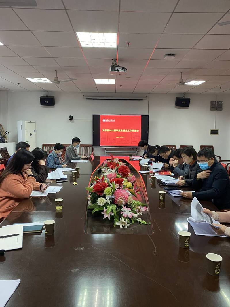 为进一步推进毕业生就业工作,提高就业质量,2022年3月31日下午,文学院在人文楼21A505会议室举行了文学院2022年春季就业推进会。文学院党委书记严志谷,院长李治平,副书记陈敬道、副院长彭江浩,文学院辅导员张力、张艳、刘骏、邱天来、陈洋及全体毕业班班主任参加了此次会议。