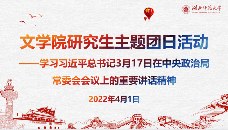 为全面加强疫情防控管理政策宣讲和法治宣传教育,根据近期学校疫情防控工作推进会会议指示精神和《湖北师范大学新冠肺炎防控指挥部通告》(2022年第1号)要求,结合实际,文学院于2022年4月1日晚,在教育楼1201召开研究生主题团日理论学习活动。文学院辅导员张力、全体在校研究生参加学习。活动由张力主持。