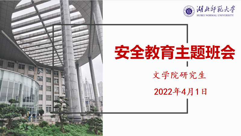 为有效控制和减少新冠疫情传播风险,科学精准做好疫情防控工作,根据近期学校疫情防控工作推进会会议指示精神和《关于进一步强化研究生疫情防控工作的通知》要求和安排,结合实际,文学院于2022年4月1日晚,在教育大楼1201召开安全教育主题班会,文学院辅导员张力、全体在校研究生参加会议。会议由张力主持。