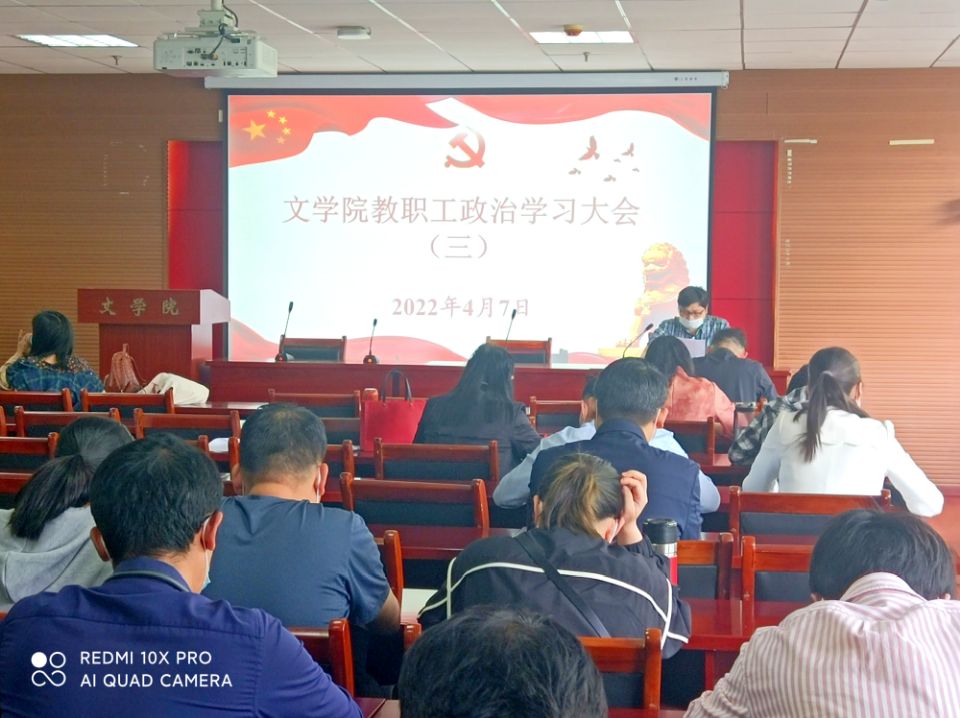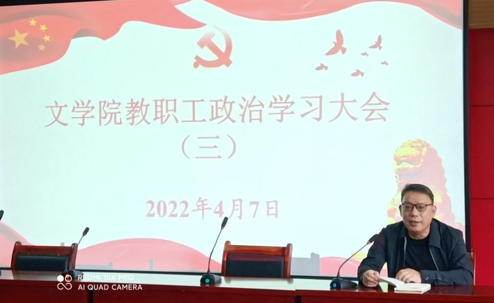 2022年4月7日下午,文学院党委在人文楼602会议室召开全体教职工政治理论学习大会,会议由党委书记严志谷主持。