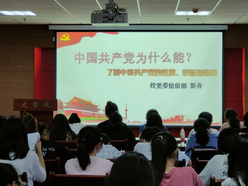 为加深⼊党积极分子对党的性质、宗旨与路线的系统学习,进⼀步提高⼊党积极分子的基础理论素养,2022年4月26日晚,文学院第二十八期入党积极分子培训班第五讲在21A602报告厅举行。校党委组织部副部长彭舟受邀担任主讲人,全体学员参加讲座。