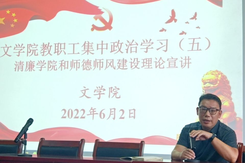 为了深入推进清廉学院建设,加强师德师风教育,2022年6月2日下午,文学院在21A602报告厅召开了清廉学院和师德师风建设教育大会,学院领导班子成员和全体教职工参加了此次会议。会议由学院党委书记严志谷主持。