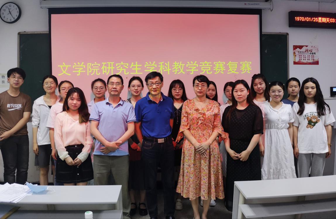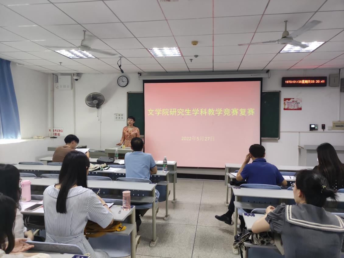 2022年5月27号上午8时,文学院研究生学科教学技能竞赛复赛在人文楼A410教室举行,来自学科语文和课程与教学论两个专业的10名同学参加本次比赛。文学院副院长彭江浩、校省级人文社科基地语言学中心副主任张道俊、中教法教研室教师张卫兵和曾爱华担任此次比赛评委。