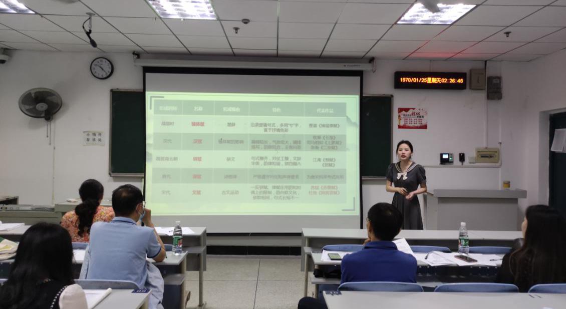 比赛项目由即兴演讲、模拟授课和评委提问三部分组成。选手们准备充分、语言流畅、内容充实,彰显出扎实的教学功底和较高的教学能力,评委老师精彩点评,师生深入交流,现场气氛活跃,以赛促学效果显著。
