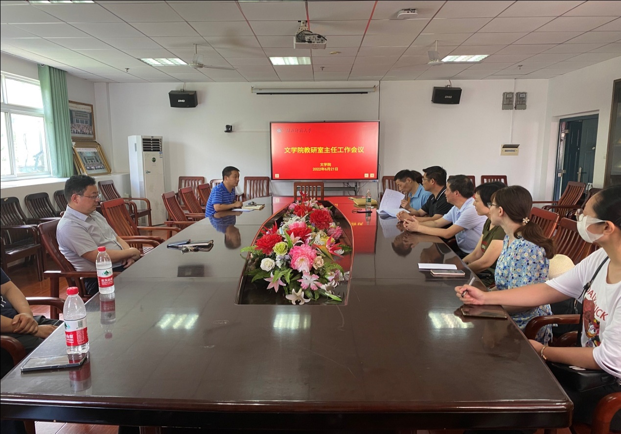 为进一步促进专业建设内涵发展,优化日常教学管理服务,2022年6月21日下午,文学院在21A505会议室召开了2021—2022学年下学期期末教研室主任工作会议。院长李治平及各教研室主任参会,会议由副院长王成主持。