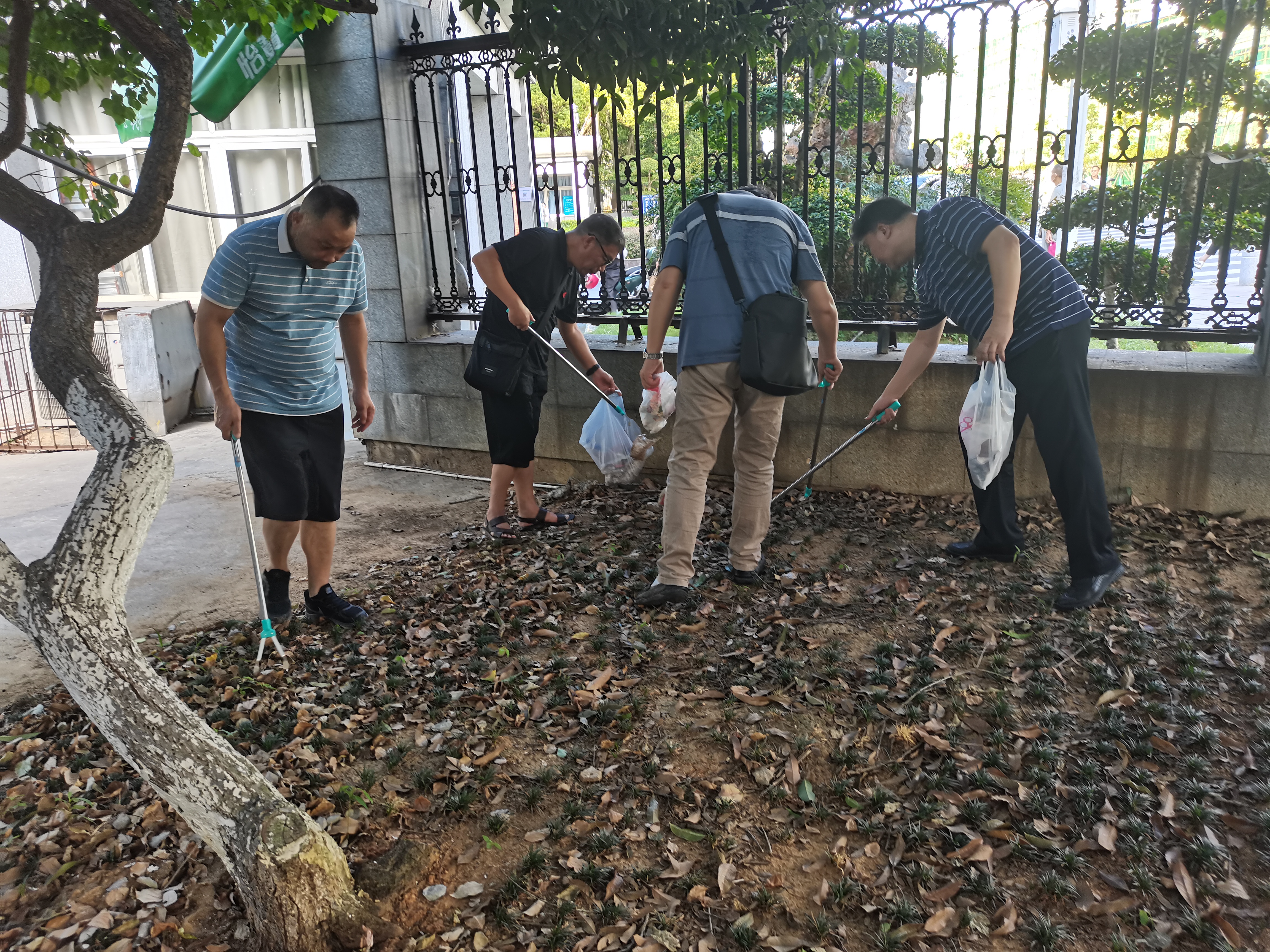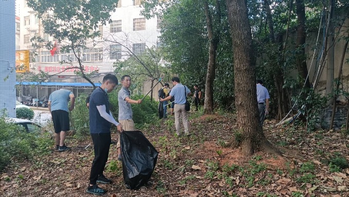 2022年8月26日下午4:30,文学院教职工前往卫生责任区开展新学期第一次集体创文活动。