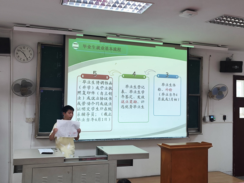 刘骏首先介绍了当前就业形势和2022届毕业生就业情况,并就近期学院就业工作安排、就业基本流程、毕业生就业准备、就业信息获取途径及其它注意事项进行了讲解。他表示,高校毕业生就业竞争愈发激烈,毕业生要认清当前就业形势,明确就业目标,坚定就业信念,制定求职计划,把握好就业机会。
