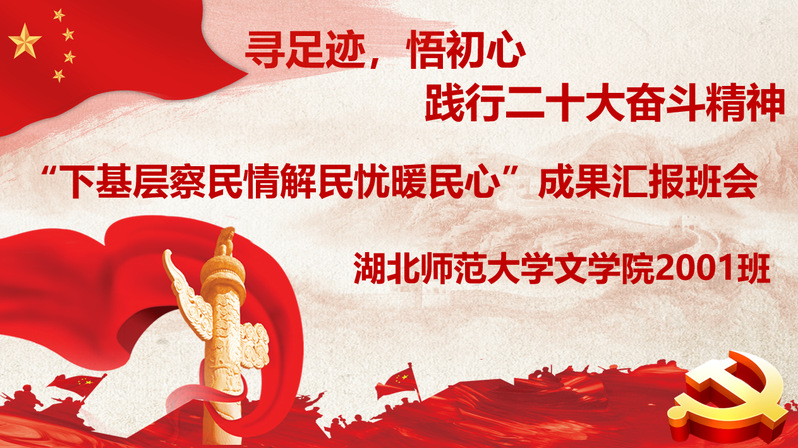 会上,2001班团支书贾倩同学围绕班级学生基本情况、团支部组织建设、集体及个人荣誉等方面进行班级风采展示。班长雷宇翔通过视频播放、PPT展示等方式领学党的十八大以来,习近平总书记五次深入湖北基层调研考察的历史足迹。刘赵颖、付明霞同学分别就各自寒暑假期间乡村支教、社区防疫等下基层实践活动的经历和故事分享心得、畅谈理想。现场还观看了文学院2022年暑期“百师进百家访百生”家访活动纪录片——《足迹·恩施行》。