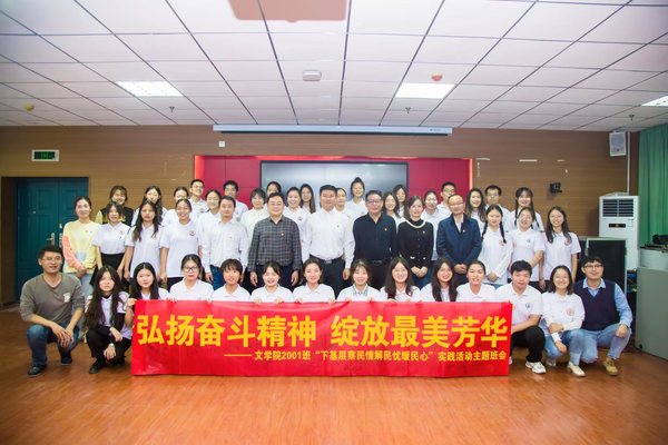 为深入学习宣传贯彻党的二十大精神,进一步贯彻落实《中共中央办公厅印发〈关于推动党史学习教育常态化长效化的意见〉的通知》精神和《中共湖北省委关于开展党员干部下基层察民情解民忧暖民心实践活动的通知》要求,持续加强大学生思想政治教育,结合文学院“九个一”工作安排,2022年10月27日晚,校党委副书记马列军深入文学院联系班级,参加2001班“寻足迹、悟初心,践行二十大奋斗精神”主题班会。文学院党委书记严志谷、院长李治平、院党委副书记陈敬道、副院长王成以及全体辅导员、2001班全班同学共同参会。会议由班主任杨文军主持。