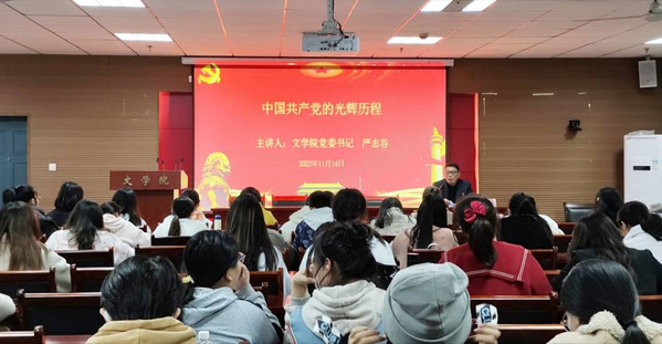 为深入学习宣传贯彻党的二十大精神,提升入党积极分子政治理论水平和素养,切实推进党史学习教育常态化长效化,2022年11月14日晚,文学院于21A602会议室举行第二十九期入党积极分子培训班第四课。文学院党委书记严志谷受邀担任主讲人,全体学员参训。