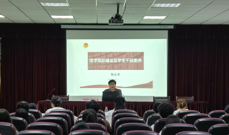 开班典礼结束后,杨志丹为全体学员讲授主题为“团学组织建设及学生干部素养”的团校第一课。杨志丹结合团中央相关要求和学校团学工作实际,向团学干部们阐述了团学组织的性质及组织架构,阐明了团学组织在学生工作中的重要地位,并围绕“思政育人、科研育人、实践育人、文化育人、组织育人”等育人体系,对团学组织工作安排和重点提出了要求。他指出,团学干部要努力提升政治素养、学业能力和身体素质,充分发挥自身在学生群体中的领头羊作用;要理顺工作思路,明确工作职责,助力学院、学校共青团事业高质量发展,立志做有理想、敢担当、能吃苦、肯奋斗的新时代好青年,让青春在学校全面建设“特色鲜明、国内一流、高水平的师范大学”的火热实践中绽放绚丽之花。