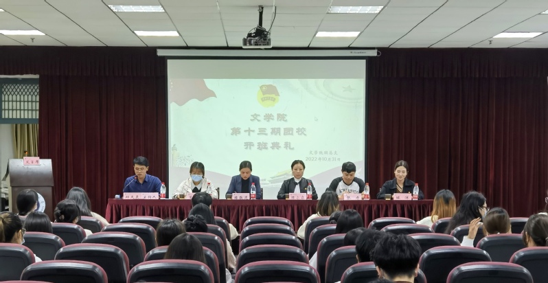 为提高团员思想理论水平和政治素质,鼓励广大青年不忘初心、砥砺前行,在党的二十大胜利闭幕之际,2022年10月31日18:30,文学院在信息大楼报告厅举办文学院第十三期团校培训班开班典礼暨培训第一讲。校团委书记杨志丹、副书记陈小露,文学院党委副书记、分团校校长陈敬道出席开班典礼。学院辅导员张力、陈洋、董雅芳,学院学生干部代表及第十三期团校培训班全体学员参加典礼。典礼由培训班班主任邱天来主持。
