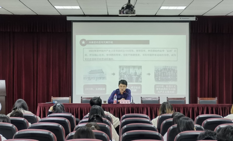 为充分发挥团课在青年教育中的重要作用,引导青年大学生知团史、晓团情,2022年11月1日18:30,文学院在人文楼21A602开展第十三期团校培训班第二讲。文学院辅导员邱天来受邀担任主讲人。培训班全体学员参加学习。
