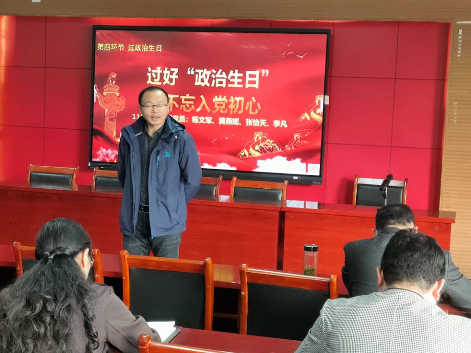 随后,活动进入仪式感满满的“政治生日”环节。本月过政治生日的4名党员杨文军、黄燕妮、张怡天、李凡各自从入党动机和入党后的经历,深情地表达出了“不忘初心”的信念和“牢记使命”的担当。