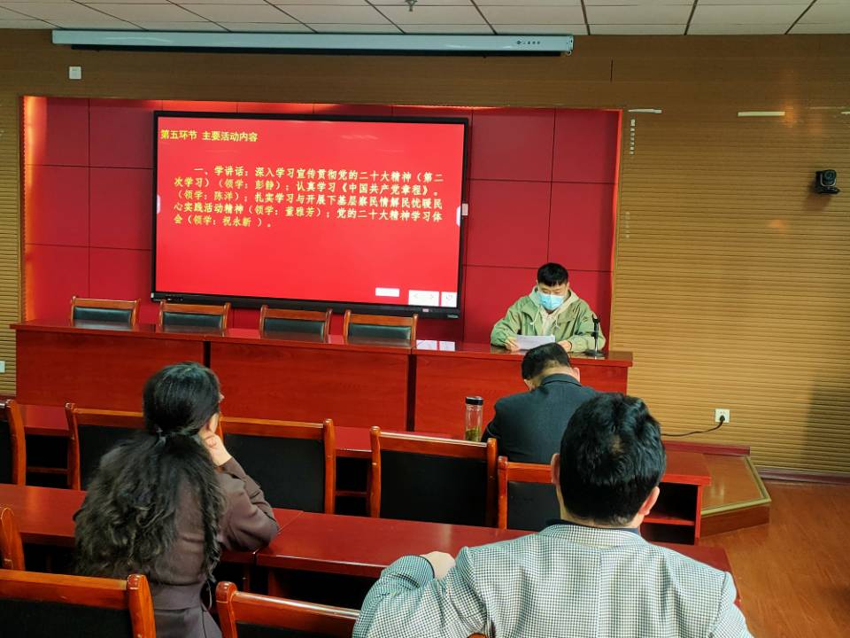 为了深入学习宣传贯彻党的二十大精神,2022年11月17日下午,文学院在人文楼A-602学术报告厅举办了“学习二十大,奋进新征程”的十一月主题党日活动。会议由学院教师第二党支部书记彭静主持,全体党员参加了本次活动。