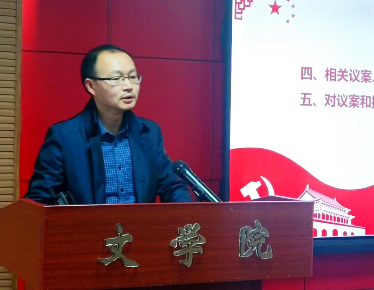 接下来,严志谷就去年第三次会议提案的执行情况及本次会议相关提案、议案作简要说明。本次提案、议案发起人依次上台就自己提出的议题作详细说明:王成代表提案为,增加文学院教师文理学院授课费系数和文学院教学办人员文理管理绩效费用;杨文军、文彬彬代表提案为,关于文学院教师例会内容和形式改革的意见。李治平代表则向大会申请议案,包括中文系系主任、相关专业负责人、教研室主任、专业委员会委员的增补,年终绩效分配中大幅提高教学类获奖、科研类获奖、社会服务类获奖的占比,突出绩效分配奖勤、奖优、奖实绩的切实作用。随后会议以教研室为单位分4个小组对提案和议案进行了长达1个小时的深入讨论。小组讨论结束后,杨文军、宫小兵、祝永新、彭静4位代表分别作所在小组讨论总结发言,一致认为,本次会议的提案、议案,能够主动回应一线教职工的合理关切、能够切实关注学院今后发展的动向、能够着力探求绩效分配的优化设置、能够大胆正视近年来学院发展存在的瓶颈,务实守正,得到了绝大部分与会教职工代表的认可。