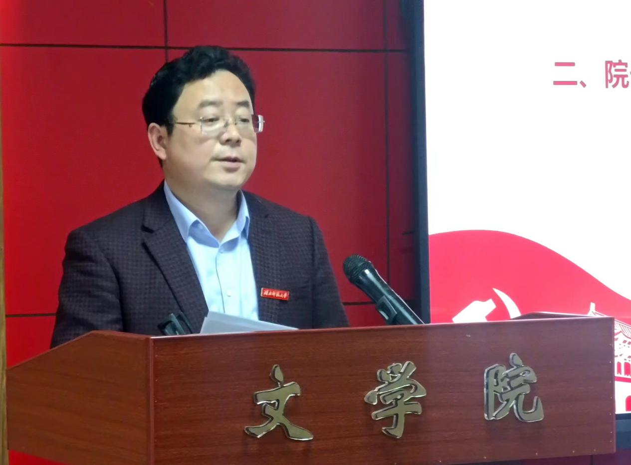 首先由院长李治平作学院2022年度行政工作报告。报告指出:学院以立德树人为根本任务,围绕疫情防控、师范专业认证、教学质量工程建设、科学研究、学科建设、高层次人才引进、人才培养、青年教师和青年学子导师制等重点任务开展工作,强化“以本为本”办学理念,突出教学中心地位,团结一心、迎难而上、顽强拼搏,较好地完成了本年度的工作任务,各路捷报频传。其中,本科专业建设方面,学院迎接了教育部对汉语言文学专业的师范认证工作,师范专业办学质量和认证准备工作获得了参与认证专家的高度认可;本科教学质量工程方面,学院获批校级课程思政示范课、教学团队6组(赵亿、李永峻、王成、刘春花、晏亮、和艳芳)、课程思政建设项目结项3项(沈月、陈欢、彭江浩);科研项目方面,国家、部、省等级,都获得不俗的成果,等等。