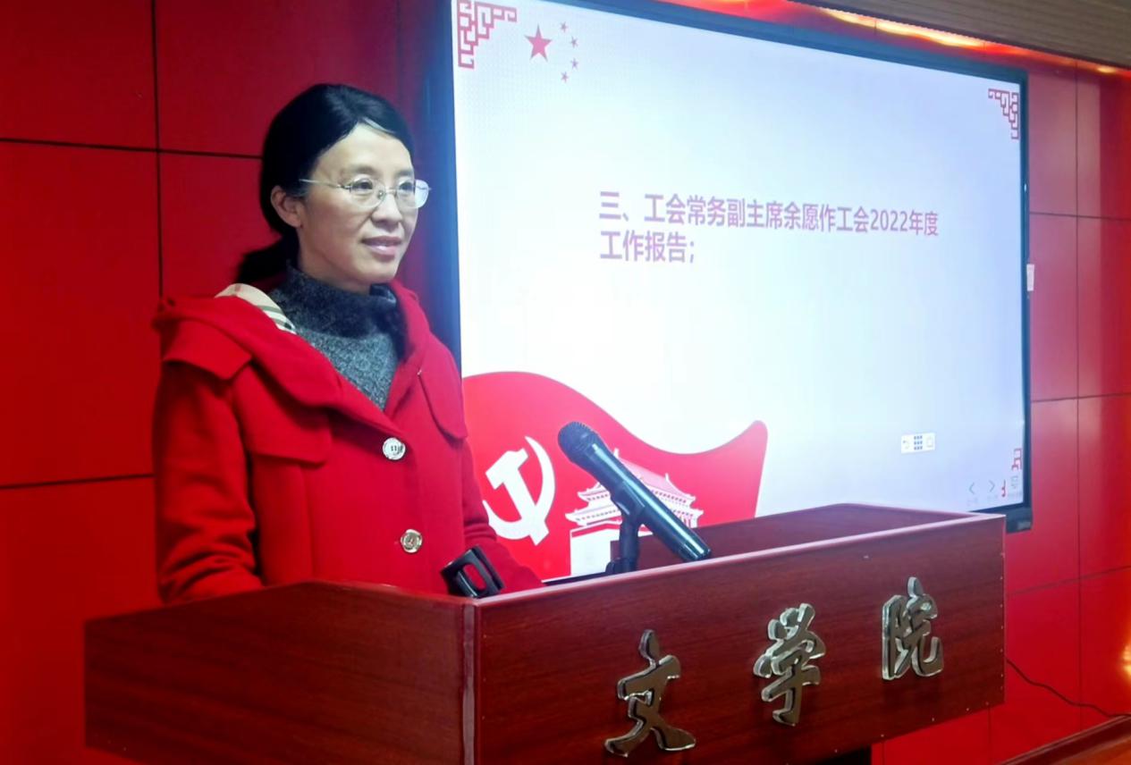 工会常务副主席余愿作工会2022年度工作报告。报告指出:文学院分工会紧紧围绕学院中心工作,在推进学院民主管理、组织开展文体活动、维护职工合法权益、推进师德师风建设、参与创文、防疫工作、开展困难帮扶、传递爱心和温暖等方面发挥了积极作用,较好地完成了各项工作任务。其中,分工会一年来慰问生活困难、生病住院、婚丧嫁娶的教职工5人次,统计发放独生子女特保费;积极配合校工会做好组织全体教职工每年一次的体检以及妇检工作,及时领取和发放体检报告,让教职工定期了解自己的身体健康状况,做到早保健、早发现、早防治。分工会获评“2022年工会先进集体”,李治平老师获得湖北师范大学第一届“我心目中的好导师”、王成老师获得湖北师范大学“师德标兵”、常璐老师获得黄石市“优秀班主任”、李永峻老师获得湖北师范大学“实验室工作先进个人”等荣誉称号,辅导员张力在省委巡视工作中因工作表现突出获得表彰,文彬彬、李春光两位老师获评2022年度工会先进个人。