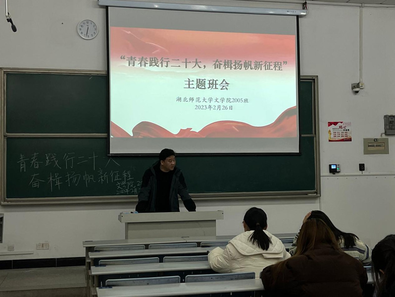 为深入贯彻落实党的二十大精神、激励学生以更加饱满的精神投入到新学期,同时加强对学生的安全教育和心理健康教育,根据学校工作安排,2022年2月26日晚,文学院利用晚点名时间组织开展开学初“青春践行二十大,奋楫扬帆新征程”主题班会。此次班会由各班班主任主持,全体同学参会。