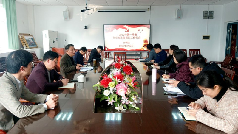 2023年3月2日上午9:00,文学院党委于人文楼A-505会议室召开2023年第一季度师生支部书记工作例会。会议由党委书记严志谷主持,全体党委委员、各支部书记悉数参加会议。
