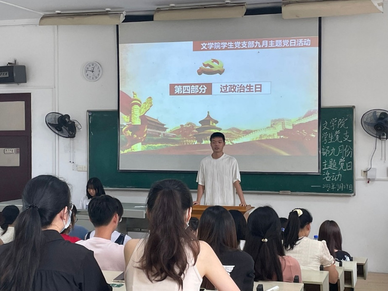为深入学习贯彻习近平新时代中国特色社会主义思想,扎实开展常态化党史学习教育走深走实,2022年9月29日中午,文学院学生第一、二、三党支部在教育大楼1j13开展“强化理论武装,筑牢政治信仰”主题党日活动暨理论学习。在校学生党员、学生党支部书记参加活动。活动由第一党支部书记张力主持。