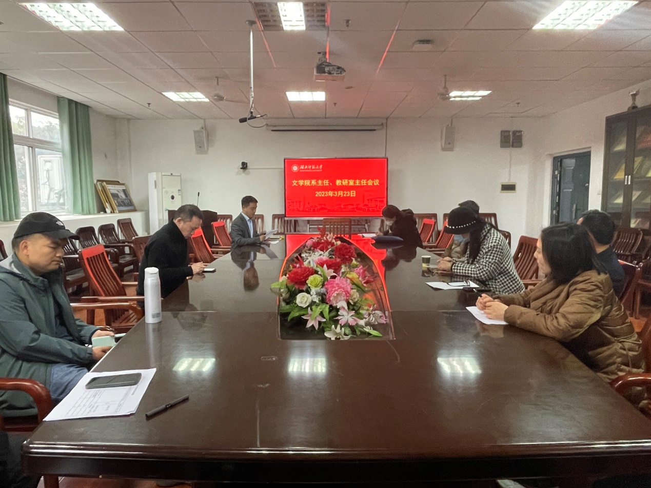 系、教研室是学校的基层教学组织,系主任、教研室主任在学院教学运行管理和教学质量保障工作中发挥着重要的桥梁和纽带作用,明确系主任、教研室主任的地位和责任,提高他们的业务素养和管理能力,有利于提高教学管理的质效,更好地为学院的教学工作服务。文学院2023年第一次系主任、教研室主任会议于2023年3月23日下午在人文楼21A505会议室召开。教学副院长王成,各系主任、教研室主任出席会议。