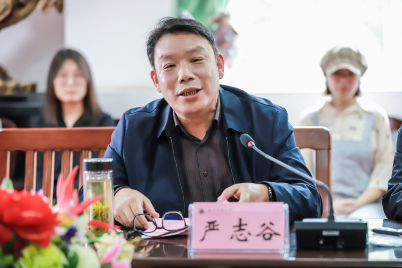 严志谷代表文学院致欢迎辞。他表示,何贞发先生两次无私为文学院捐资助学,体现了一名爱心企业家的深厚情怀和责任担当:一是家国情怀,情系青年学子,助力共同富裕;二是社会担当,体现了强烈的社会责任感和使命感;三是教育情怀,彰显了爱心企业家热心教育事业的赤子情怀。文学院将以此次捐赠为契机,发挥学科优势,着力内涵发展,以优异的办学成绩积极回馈社会的厚爱。