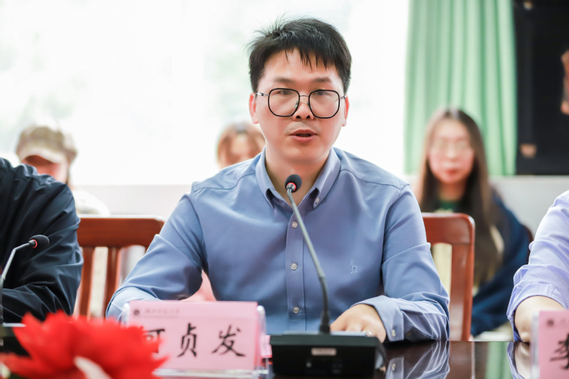何贞发大学同学、文学院2001班班主任杨文军介绍了何贞发先生基本情况,深情回忆了与何贞发在华中师范大学的大学时光和何贞发两次为文学院捐资助学的情况。