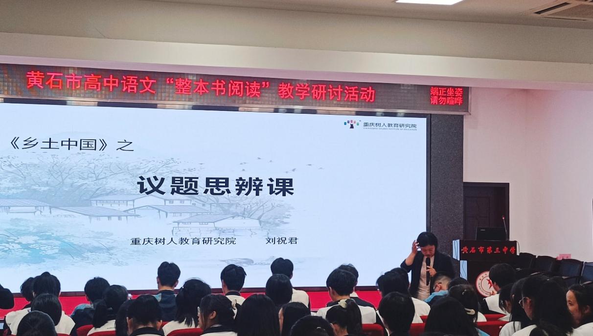 重庆树人教育研究院、中学语文研究员刘祝君带来了一堂题为《<乡土中国>议题探究课——现代人的乡土基因》优秀示范课。刘祝君以《乡土中国》的重刊序言导入,从“黏在土地上”、“不流动”、“聚村而居”、“熟悉社会”等几个概念让学生深入理解《乡土中国》的“乡土性”特征。刘祝君先提出议题,让同学们分析相关调查材料,并通过讨论得出结论。