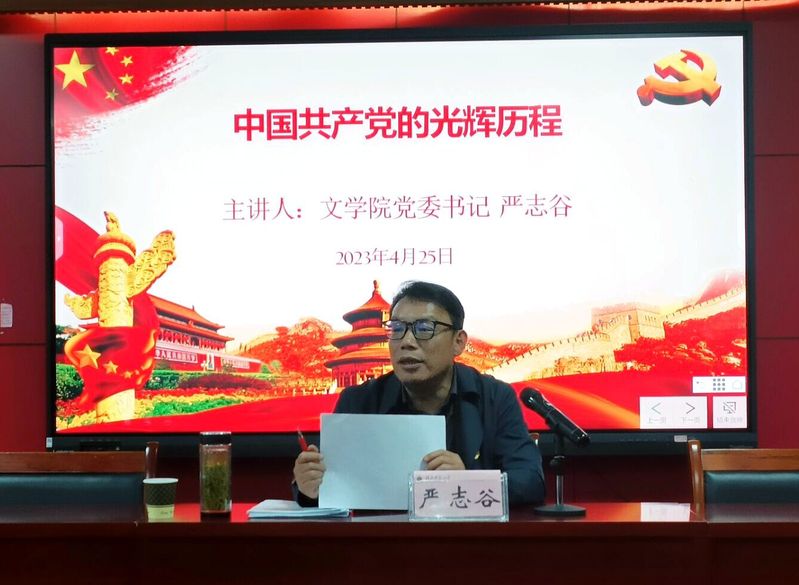 开班典礼结束后,由严志谷为全体学员讲授以“中国共产党的光辉历程”为主题的培训第一课。他从党的百年光辉历程联系到中国发展的巨大变革、取得的辉煌成就,强调学习党史的历史和现实意义。他通过大量的史实来说明正是因为有中国共产党坚强正确的领导和中国人民艰苦卓绝的奋斗,中国才能迈向国家富强、民族复兴、人民幸福的光明大道。他鼓励学员们不负时代、不负韶华,继承一代代革命先辈遗志,坚持学习贯彻习近平新时代中国特色社会主义思想,做到学思用贯通、知信行统一,把理论学习融入到实践当中,不断提升党性修养。