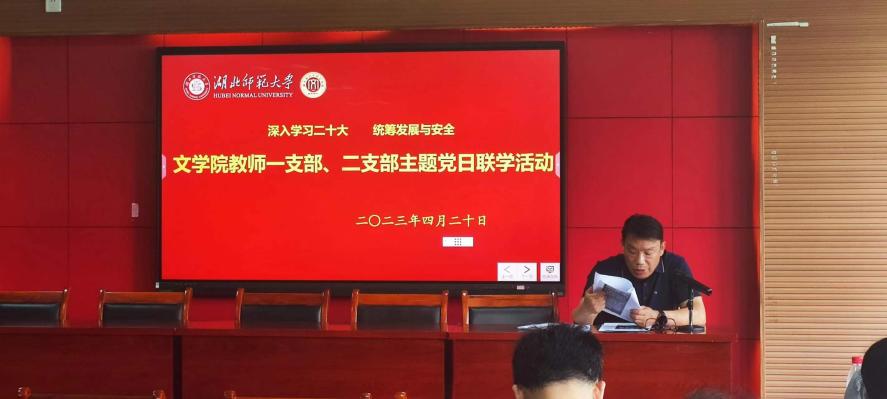 2023年4月20日下午,文学院教师一支部与教师二支部在人文楼A-602学术报告厅联合召开全体党员大会,组织开展题为“深入学习二十大,统筹发展与安全”的主题党日活动,活动由第一支部组织委员李春光同志主持。