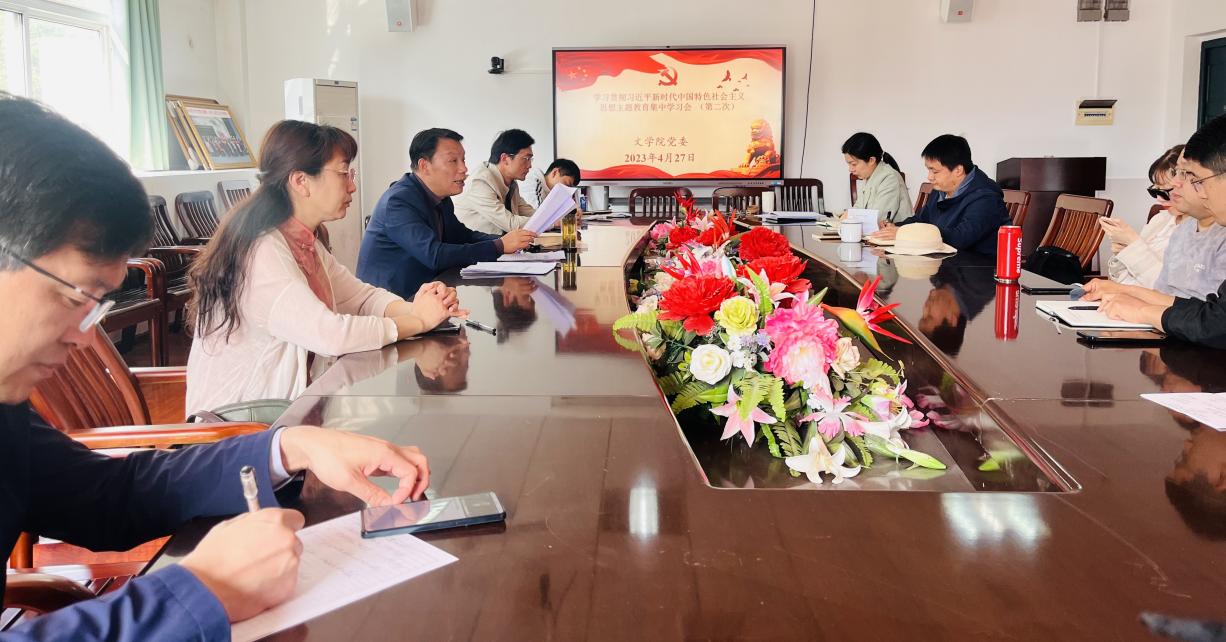 2023年4月27日上午,文学院党委在人文楼A-505会议召开学习贯彻习近平新时代中国特色社会主义思想主题教育第二次集中学习会。会议由党委书记严志谷主持,全体党委委员、各师生党支部书记及教师支委等参加会议。