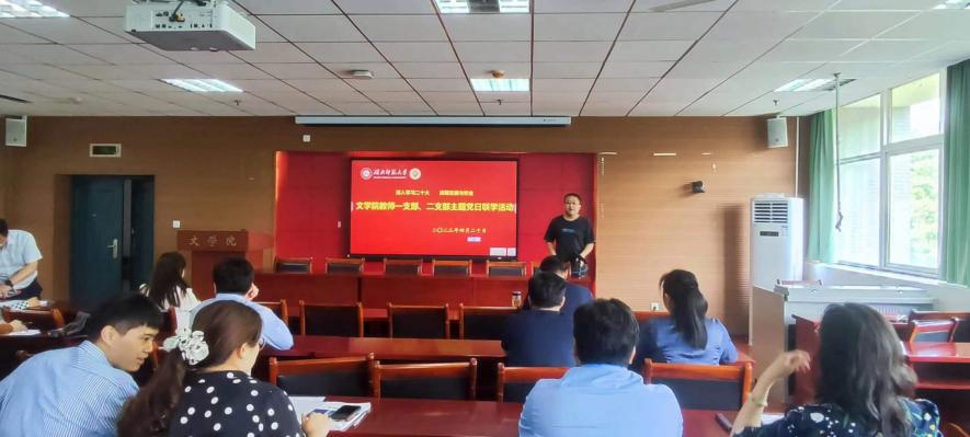 2023年4月20日下午,文学院教师一支部与教师二支部在人文楼A-602学术报告厅联合召开全体党员大会,组织开展题为“深入学习二十大,统筹发展与安全”的主题党日活动,活动由第一支部组织委员李春光同志主持。