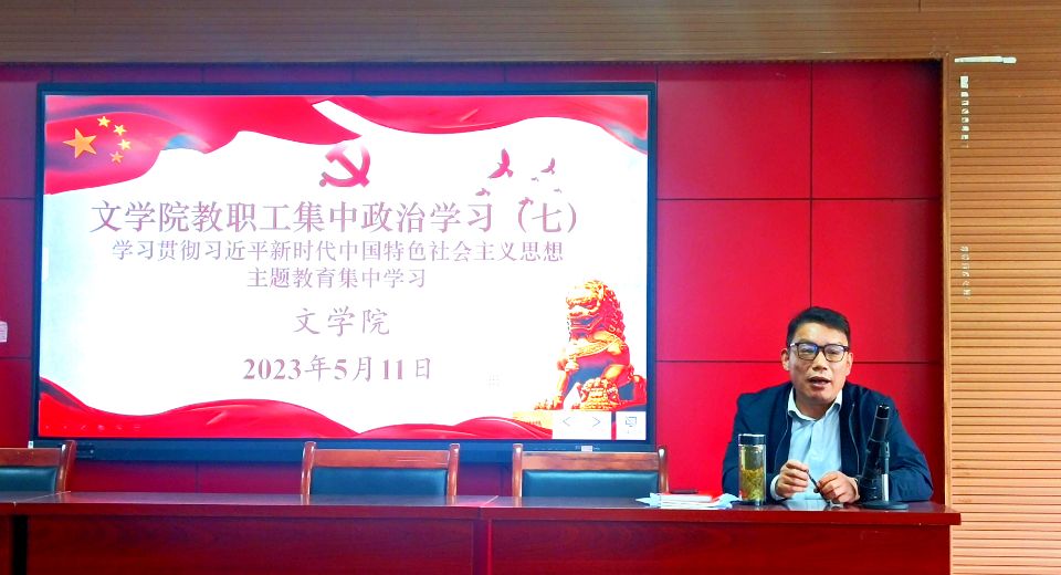 2023年5月11日下午,文学院于人文楼A-602学术报告厅召开本学期第七次教职工集中政治学习大会,重点学习《习近平关于调查研究论述摘编》。会议由党委书记严志谷主持,学院全体教职工参加会议。
