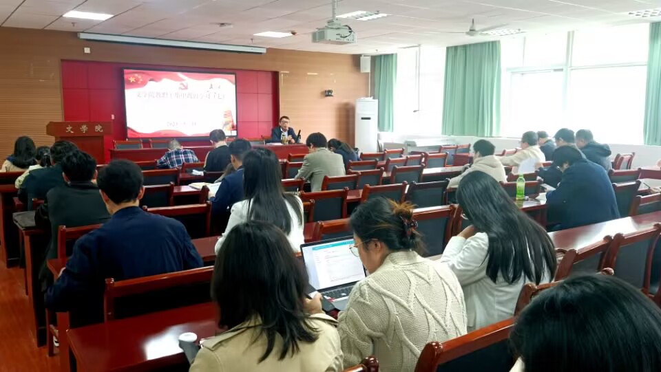 2023年5月11日下午,文学院于人文楼A-602学术报告厅召开本学期第七次教职工集中政治学习大会,重点学习《习近平关于调查研究论述摘编》。会议由党委书记严志谷主持,学院全体教职工参加会议。