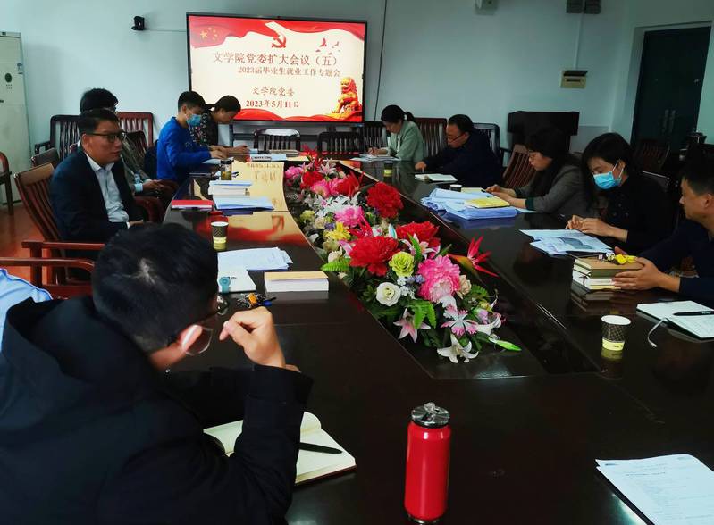 为认真贯彻习近平总书记关于做好高校毕业生就业工作的重要指示批示精神,落实党中央、国务院“稳就业”“保就业”决策部署,把毕业生就业工作摆在突出位置,加快推进就业工作进程,全力促进毕业生更加充分更高质量就业,2023年5月11日上午,文学院党委于人文楼A-505会议室召开“2023届毕业生就业工作专题会”。党委书记严志谷、院长李治平,党委副书记陈敬道,副院长李有光、彭江浩和王成以及学院党委委员、全体辅导员参加会议。会议由李治平主持。