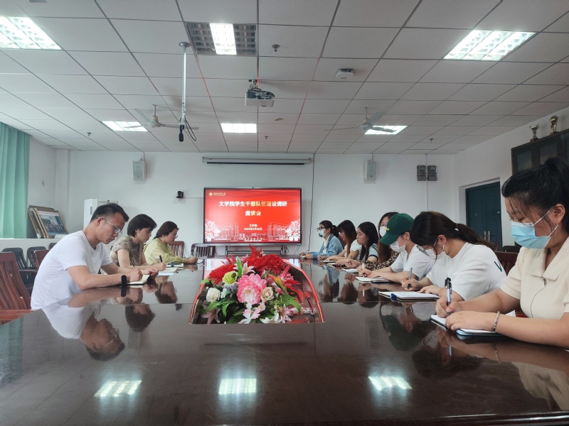 为深入推进学习贯彻习近平新时代中国特色社会主义思想主题教育走深走实,全面树立“以学生发展为本”的教学理念,大兴调查研究,根据学院工作安排,2023年5月26日,文学院召开学生干部队伍建设调研座谈会。党委副书记陈敬道出席会议并讲话,辅导员邱天来、董雅芳、吴鸿杰,学生干部代表参加会议。