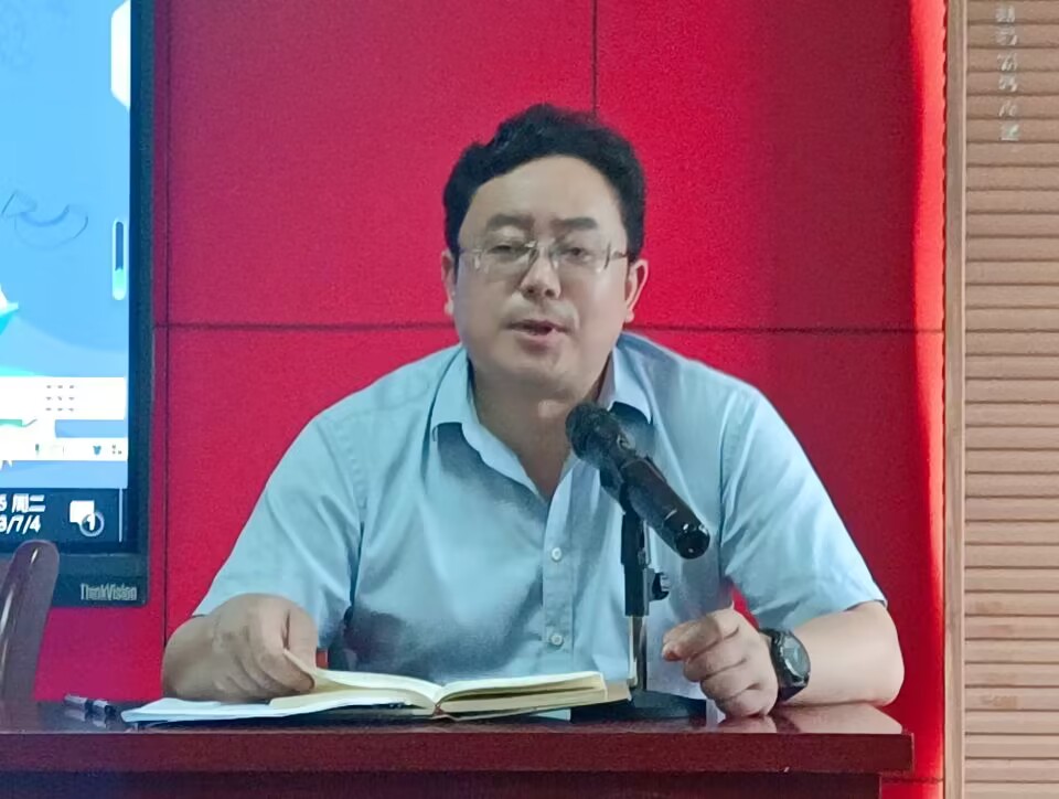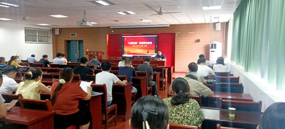 2023年7月4日下午,文学院党委于人文楼A-602学术报告厅召开本学期第九次教职工集中政治学习大会,本次大会共有五项内容:1.“以案说德”师德师风教育(二);2.文学院2023年党风廉政建设宣传教育月工作部署;3.教职工集中廉政从教谈话;4.学院主题教育开展情况通报;5.暑假重点工作安排。会议由党委委员、院长李治平主持,全院教职工参加大会。