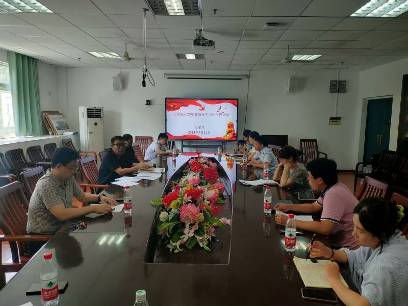为贯彻落实学校工作会议精神、做好学院暑假期间安全管理工作,2023年7月12日上午,文学院在21A505会议室召开2023年暑期安全工作专题会议。党委书记严志谷,院长李治平,副院长彭江浩、王成,党委委员,师生支部书记参加会议。