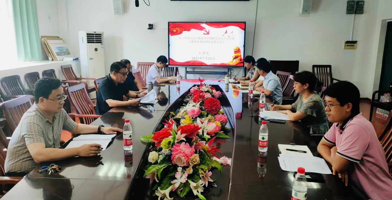 2023年7月12日上午,文学院党委于人文楼A505会议室召开学习贯彻习近平新时代中国特色社会主义思想主题教育调查研究成果交流会。会议由院党委书记严志谷主持,全体院党委委员及各师生党支部书记参加了会议,学院班子成员依次做了交流发言。