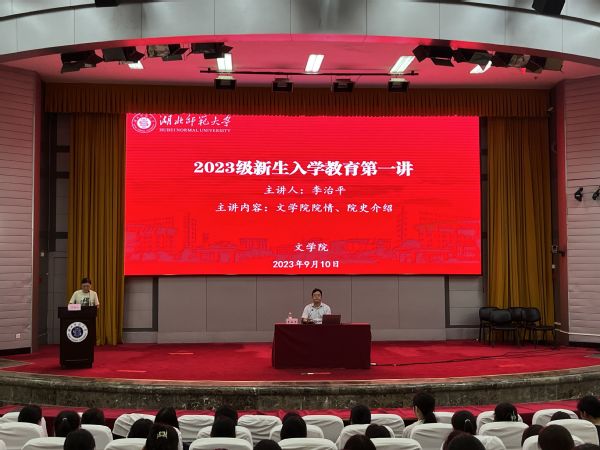 为帮助新生尽快适应大学生活,顺利完成从中学到大学的角色适应和角色转变,进一步引导新生客观认识自我、建立合理生活秩序、养成良好学习习惯、规范个人行为、树立远大的奋斗目标,在人生的新起点上迈好坚实的第一步。2023年9月10日晚,文学院于教育大楼报告厅开展2023级新生入学教育第一讲。此次讲座由文学院院长李治平担任主讲,党委副书记郭笑笑主持,2023级全体新生参与。