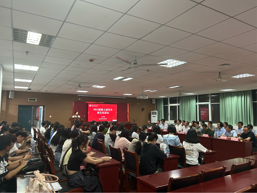 2023年9月8日晚上,文学院在人文楼21A602召开2023级硕士研究生师生见面会。会议由副院长彭江浩主持,文学院研究生导师和研究生新生参会。