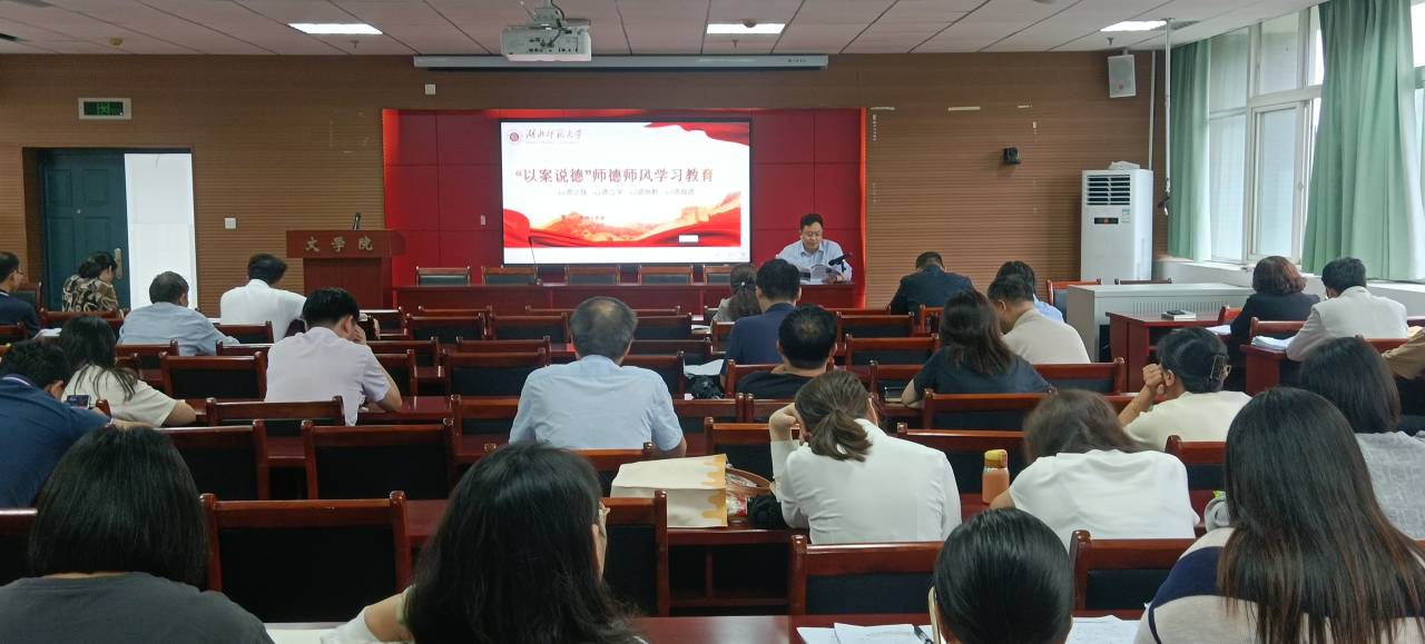 2023年9月21日下午,文学院党委于人文楼A-602学术报告厅组织开展“以案说德”师德师风学习教育活动,全体教职工参加、院党委书记严志谷主持、院长李治平主讲。