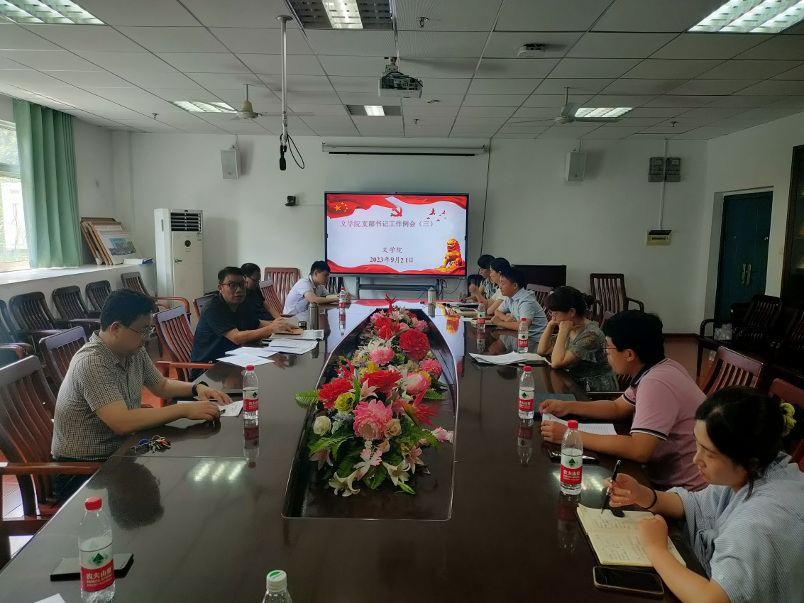 2023年9月21日上午,文学院党委、各师生支部支委于人文楼A-505会议室召开本年度第三次支部书记工作例会,组织开展支部工作相关问题的研讨。