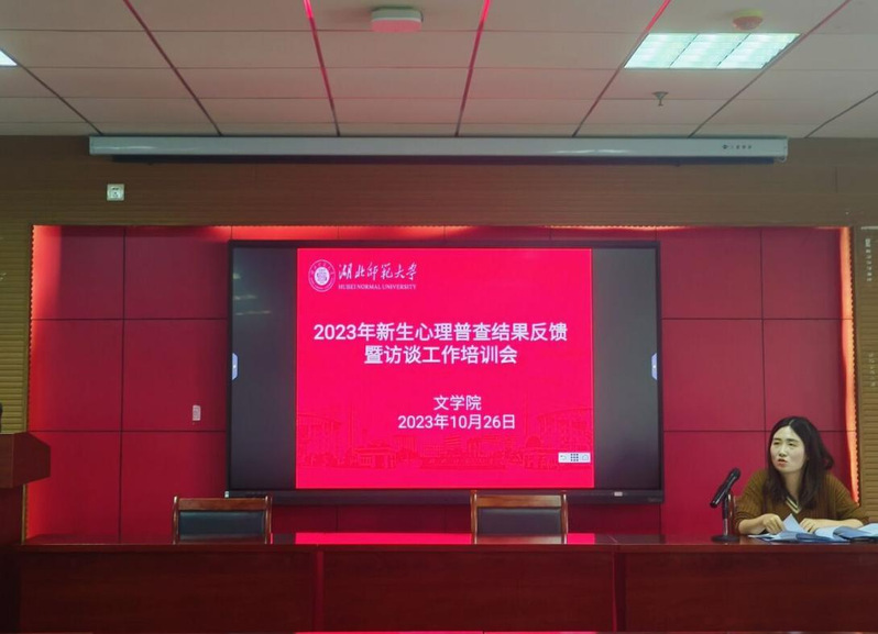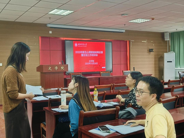 为进一步做好新生心理健康教育工作,提高新生班主任心理访谈水平。2023年10月26日下午,文学院于21A602召开2023年新生心理普查结果反馈暨访谈工作培训会,学院党委副书记郭笑笑、2023级全体新生班主任参与此次培训,会议由辅导员陈洋主持。