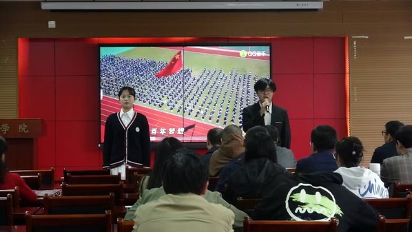 强国必先强教,强教必先强师。党的十八大以来,以习近平同志为核心的党中央高度重视教师队伍建设,大力弘扬教育家精神,勉励教师队伍牢记为党育人、为国育才的初心使命,树立“躬耕教坛、强国有我”的志向和抱负,自信自强、踔厉奋发,为强国建设、民族复兴伟业作出新的更大贡献。在此背景下,2023年11月9日14:30,文学院于人文楼A-602报告厅举办“躬耕教坛,强国有我”2023年道德讲堂,校教务处、工会、档案馆干部职工和文学院全体教职工及学生代表参会,文学院2021级学生张芮千担任主持。