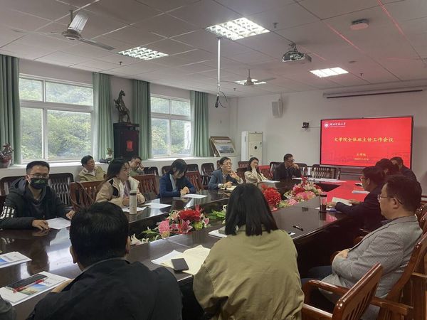 为保障学生健康与校园安全,切实做好秋季学期十一月份学生安全教育管理工作,2023年11月9日下午,文学院在人文楼A-505会议室召开全体班主任工作会议。学院党委书记严志谷、院长李治平、党委副书记郭笑笑和副院长彭江浩、王成、杨文军,辅导员陈洋、董雅芳、吴鸿杰及全体班主任参加,会议由郭笑笑主持。