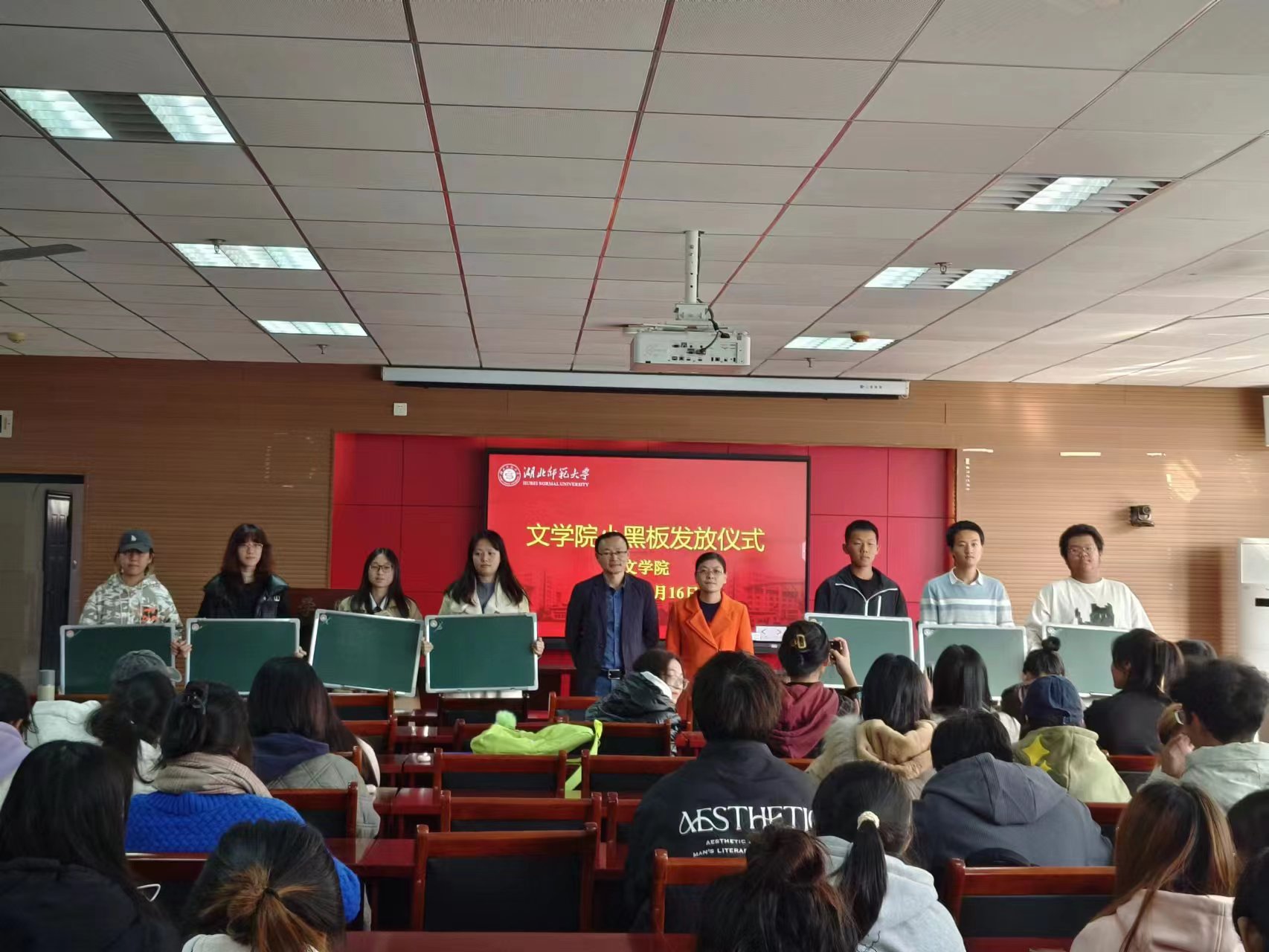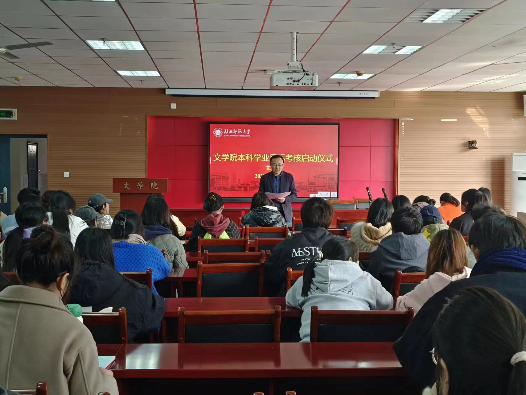为落实立德树人根本目标,加强本科生培养质量管理和师范生基本功训练,2023年11月16号下午,文学院在人文楼21A602报告厅举行“学业目标考核启动暨小黑板发放仪式”,文学院副院长杨文军、副书记郭笑笑出席本次活动并发表讲话。